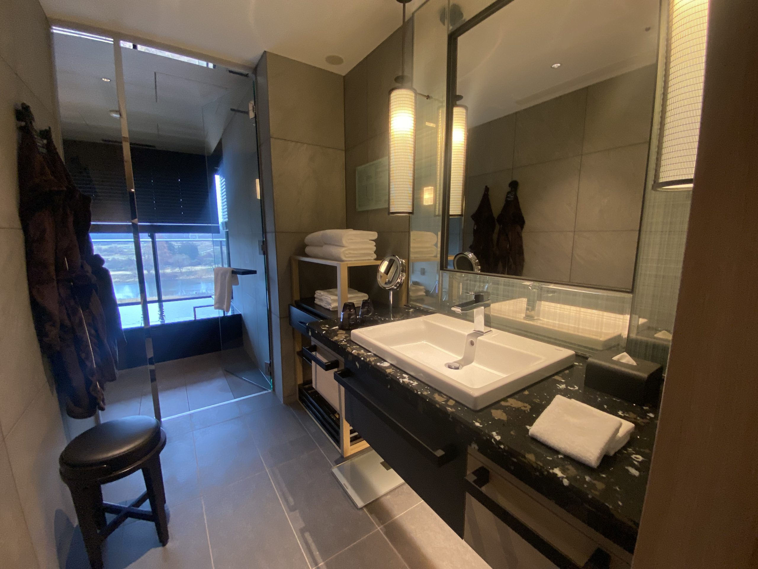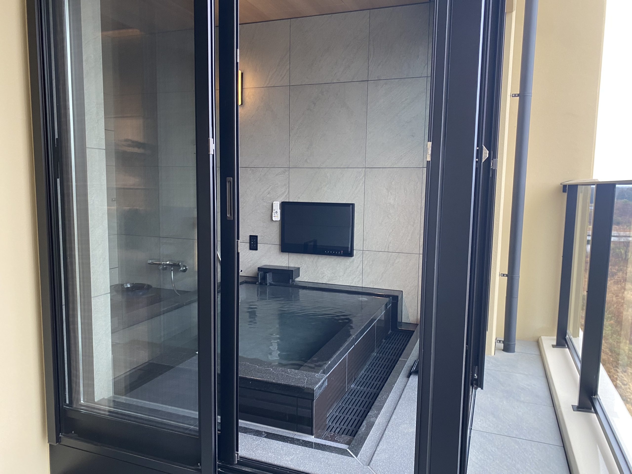 では、もう一つの気掛かりである、お部屋の温泉窓が開けれるか、開けれないか問題でありますが、クラベールも以前ブログ内で多分お部屋の温泉の窓は開けれるはず。と言っておりましたが、全面と側面の窓が半分すず開けることが出来ます。つまりエクシブ箱根離宮Sタイプ20部屋と同じ開き方となります(わからない方はスルーしてください)