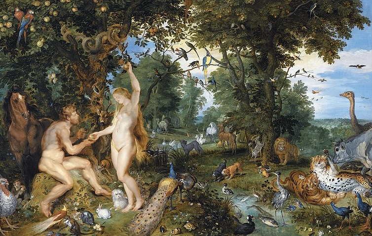 (ルーペンスヤンブリューゲルス画、人間の墜落のあるエデンの園)