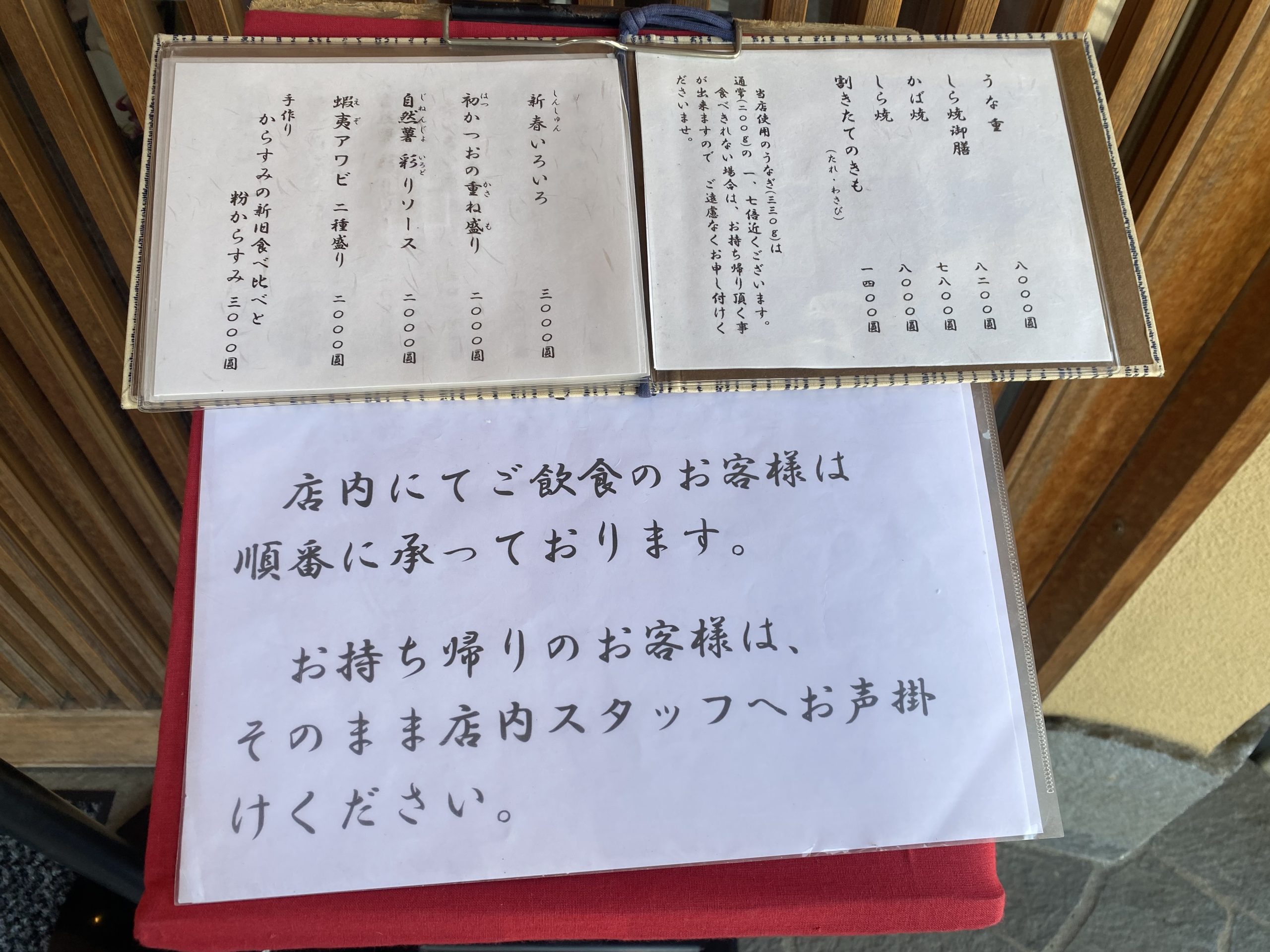 今回、クラベールご一行様は平日午前11時に到着致しましたが、待ち時間は30分ほどでした。ちなみに休日のお昼時に行くと、鰻重は確保予約しても2時間、3時間待たなくてはならなくなったりしますので、おそらくこちらの鰻を食べる正解は予約して平日に朝食を食べずに午前10時ぐらいに家を出る。が正解ではないでしょうか。