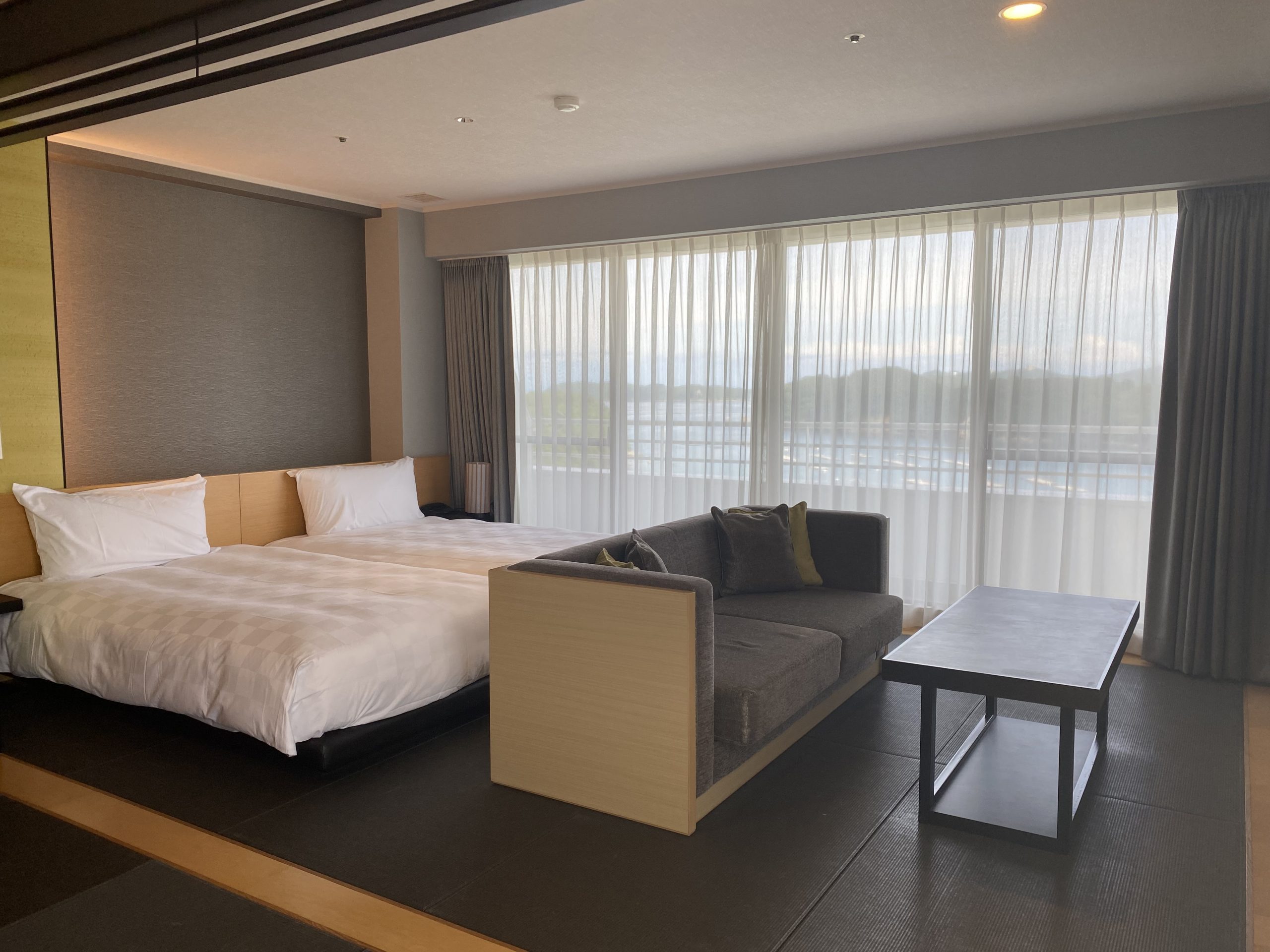 つまりエクシブ鳥羽本館のラージリニューアル部屋はエクシブ湯河原離宮CBタイプ和モダン部屋とほぼ同じ部屋という事になります。違いと言えばお風呂とトイレがエクシブ鳥羽本館がユニットバスの一体型なのに対してエクシブ湯河原離宮CBタイプ和モダンはセパレートのお洒落版と言った所でしょうか。