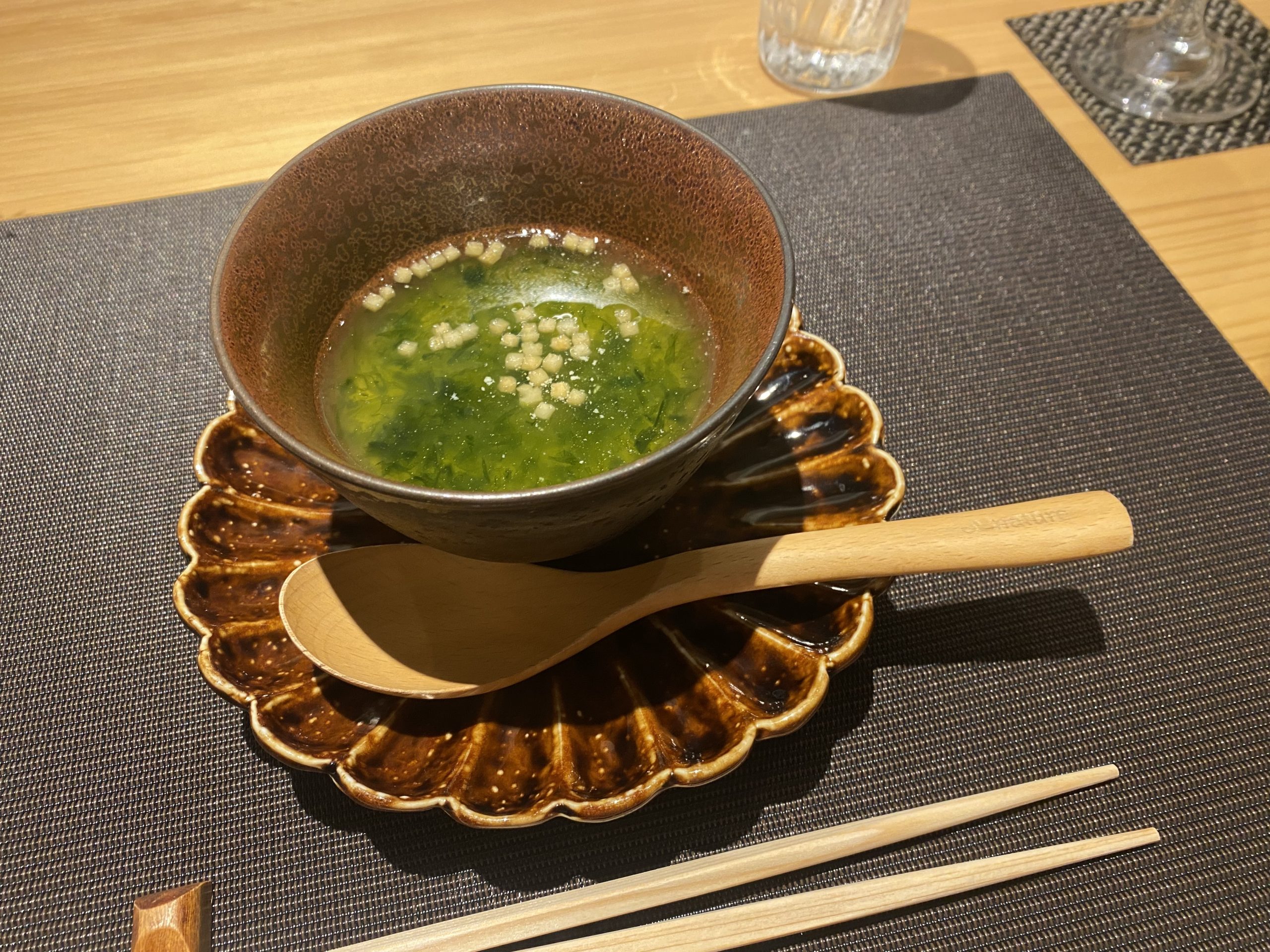 磯の香りを十分に楽しめるお椀となっています。最初に感じることはこのコース内容で11、000円、税込サービス税込みで13、000円ほどとなりますが、都内で同じような内容をお寿司屋さんでカウンターで頂くとなると、正直この値段では無理なのでとても安いと思いました。