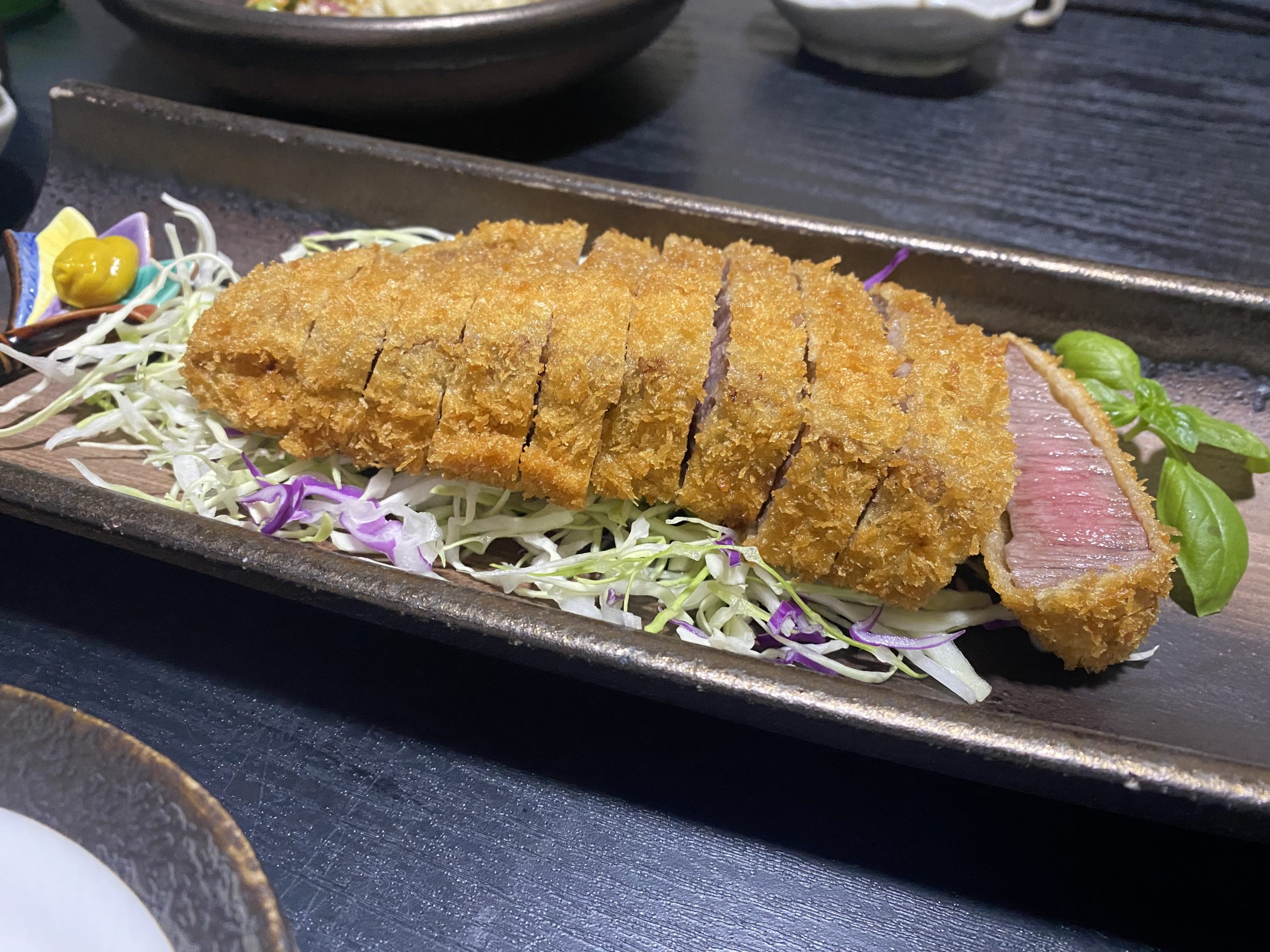こちらは高千穂牛カツレツ。なんだろうか。東京での晩御飯金額に慣れてしまうと、何もかもが安く感じる不思議。