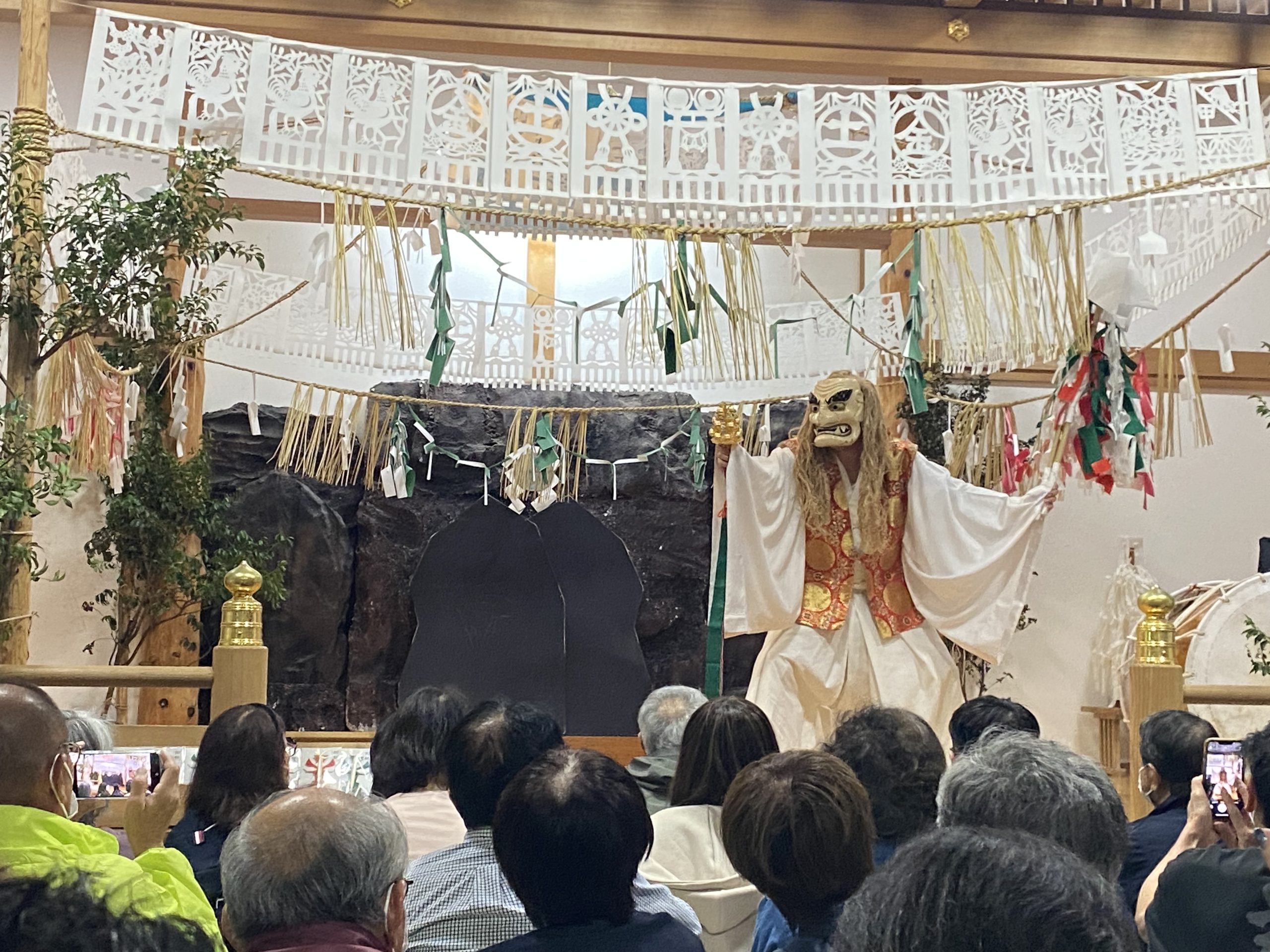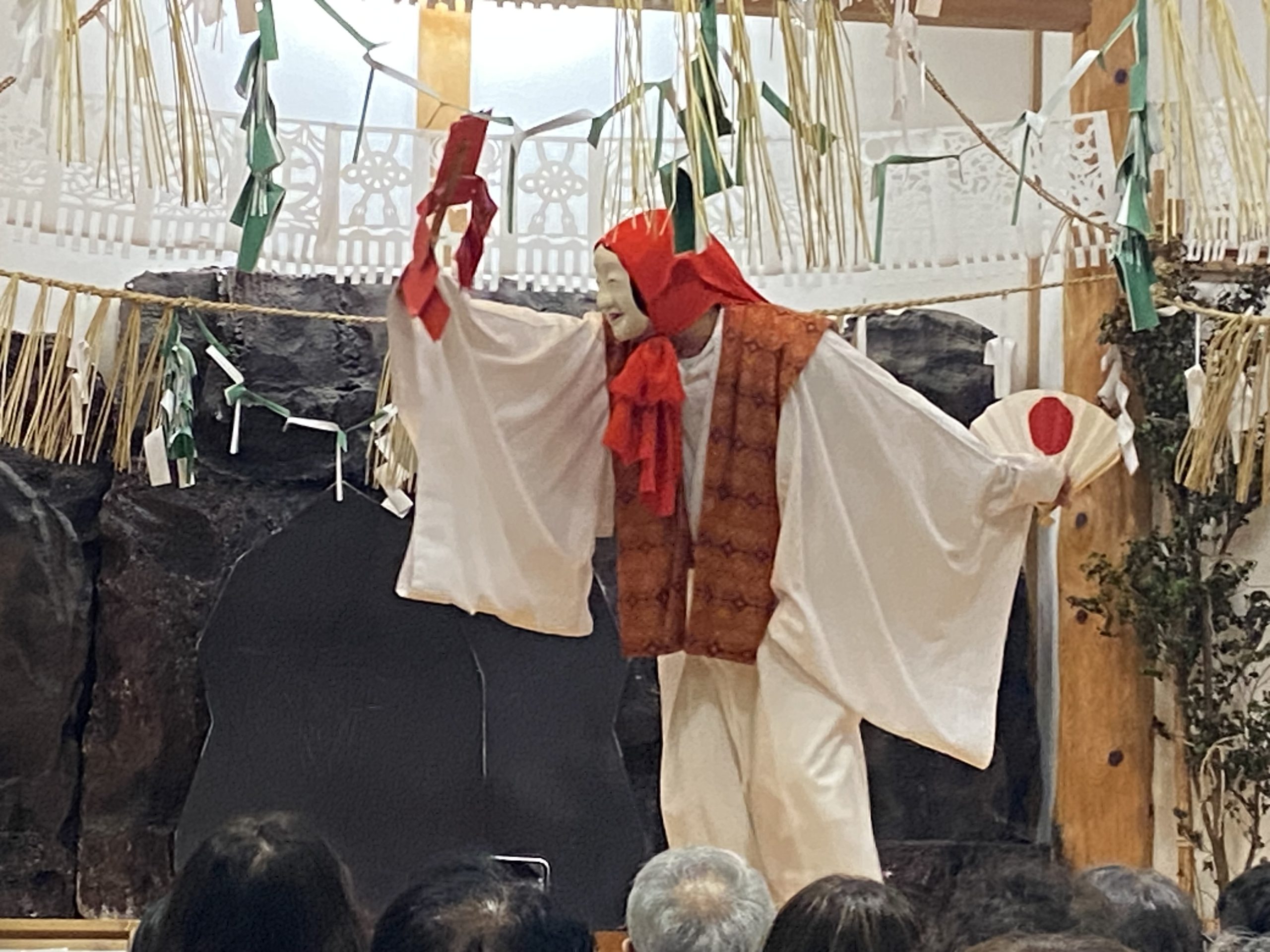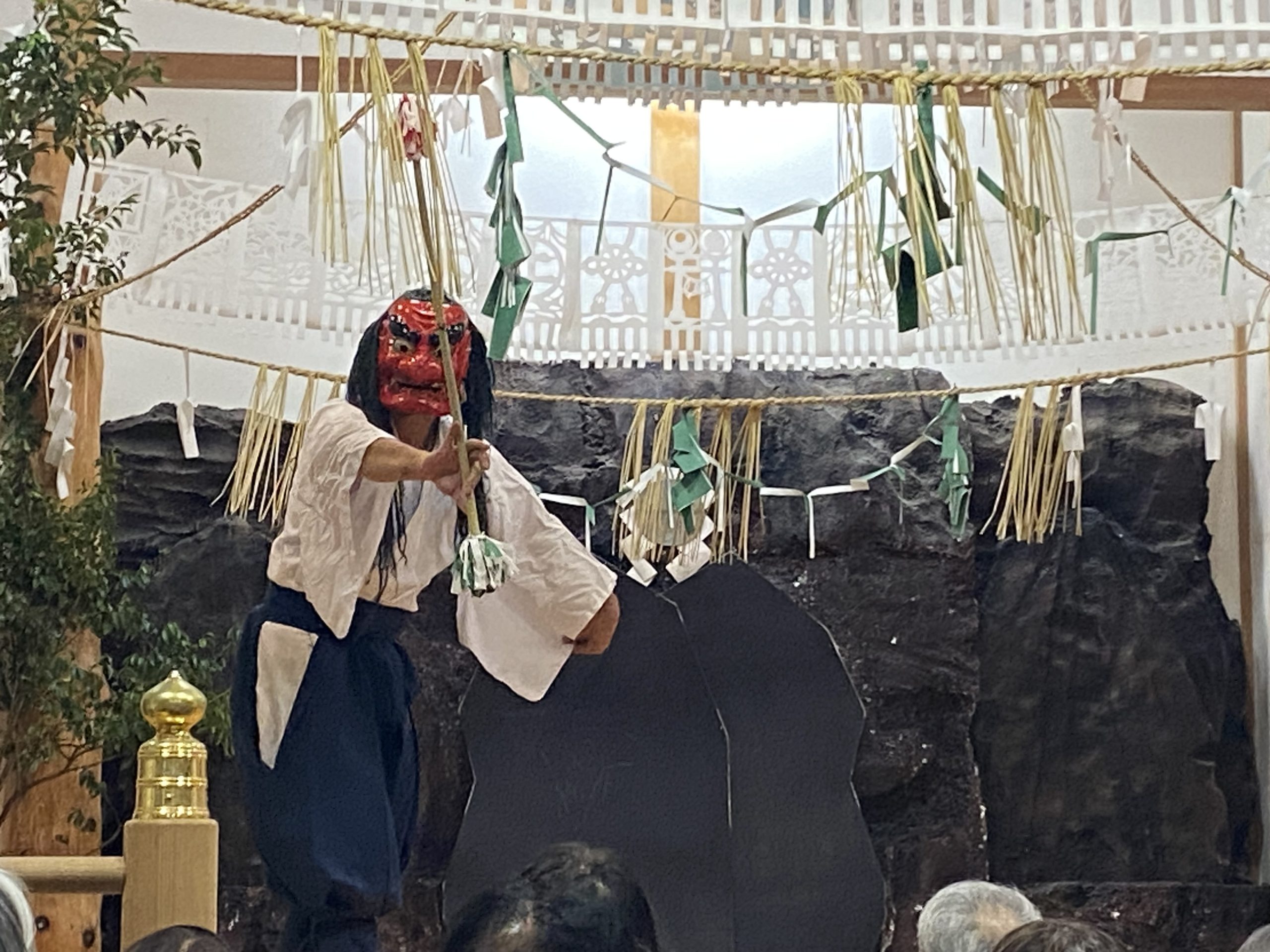 アマテラスが岩窟から顔を覗かせた所を手力雄の神がアマテラスを岩窟から引き摺り出す様子を舞にした神楽となります。【施設】東京ベイコート倶楽部 (40)