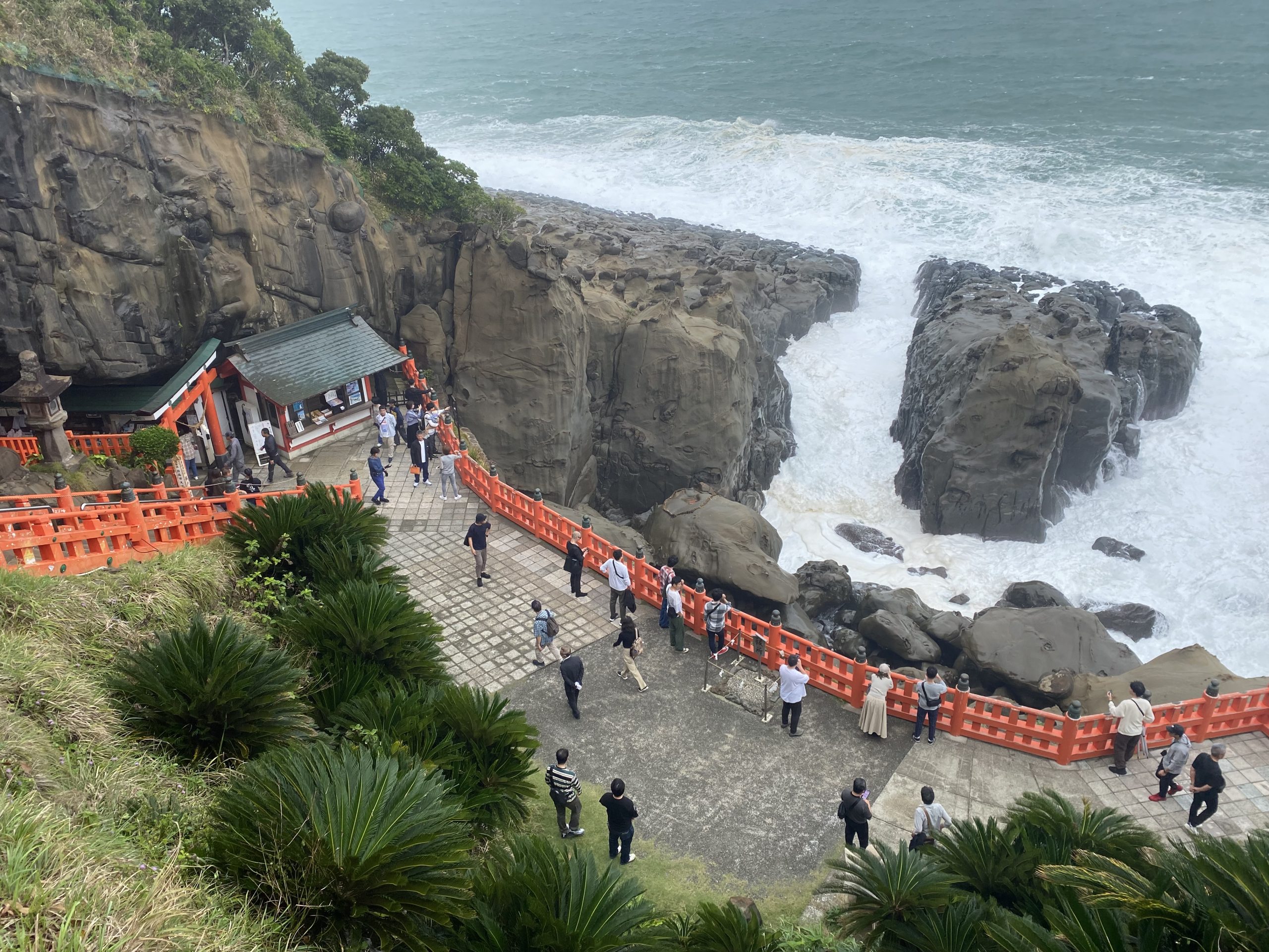 岸壁に立っている鵜戸神宮は本当に本当に美しい場所であります。この美しい場所でトヨタマヒメはご出産となるのですが、こちらのトヨタマヒメですが、私の出産している間はこの産屋を絶対に覗いてはいけませんと山幸彦に伝えるのですが、そう言われるとみたくなるのが人間の性であります。
